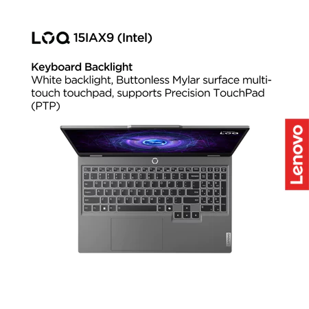 Lenovo Gaming LOQ 15IAX9 83GS001JID Luna Grey (Intel Core i5-12450HX, Win11 Home, 1x 12GB SODIMM DDR5-4800, 512GB SSD NVMe, NVIDIA GeForce RTX 3050 6GB GDDR6, 15.6″ FHD IPS 300nits, Anti-glare, 144Hz, 100% sRGB, NVIDIA G-Sync, Wi-Fi 6, White Backlit, Garansi Resmi 2 Tahun Premium Care + ADP) + OHS 2021 + Packing Kayu (kecuali Instant)